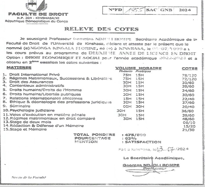 Licencier en Droit Economique et Sociale. Cet option me permet de garantir la gestion financier, de problème quotidien.