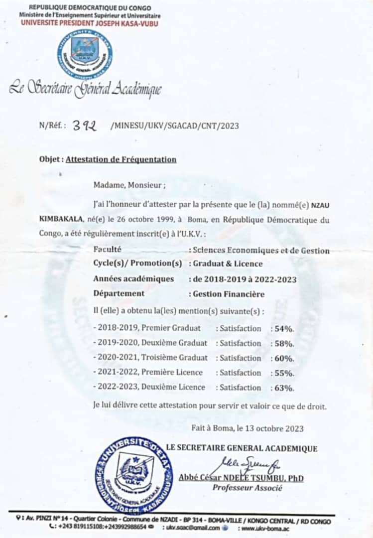 Université Joseph kasa vubu UKV 2023